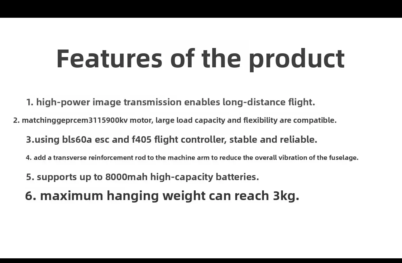 Peso da estrutura: 1980g (dependendo da resistência personalizada).