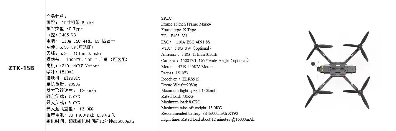 Casa / Produtos / Plataforma de Drones / Drone FPV / Drone FPV de 15 polegadas com orientação por IA e transmissão por fibra óptica. Material da carroceria : fibra de carbono